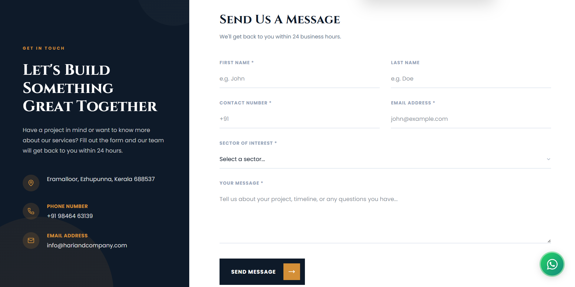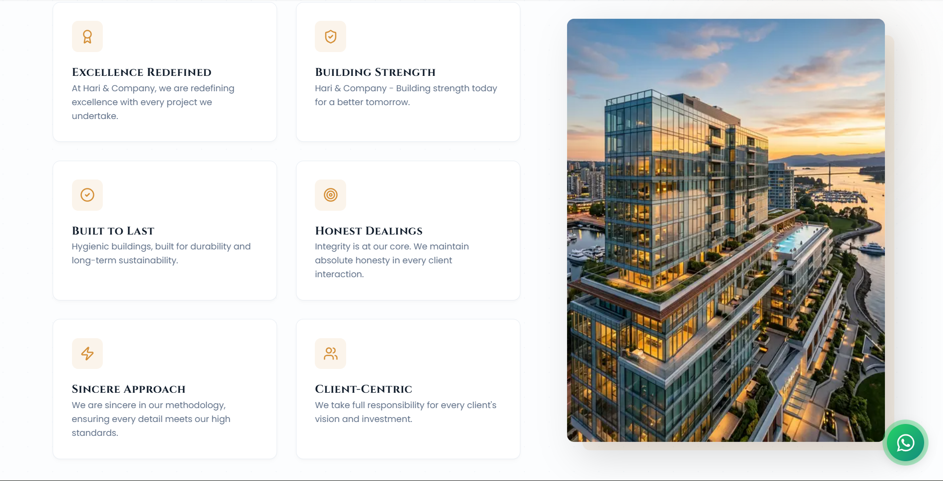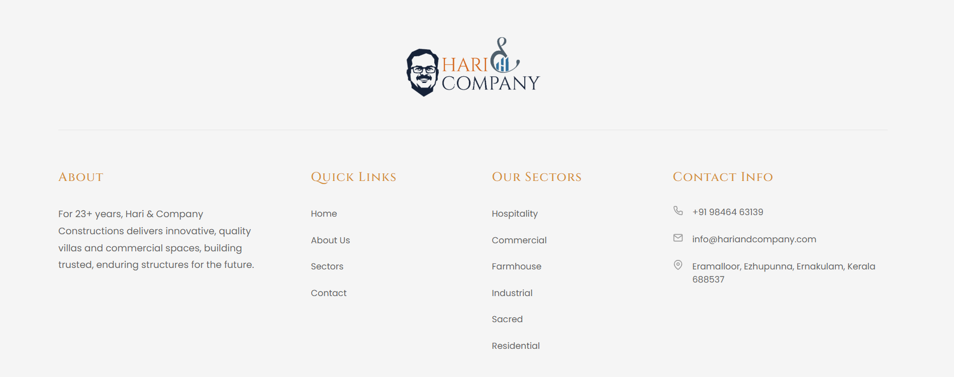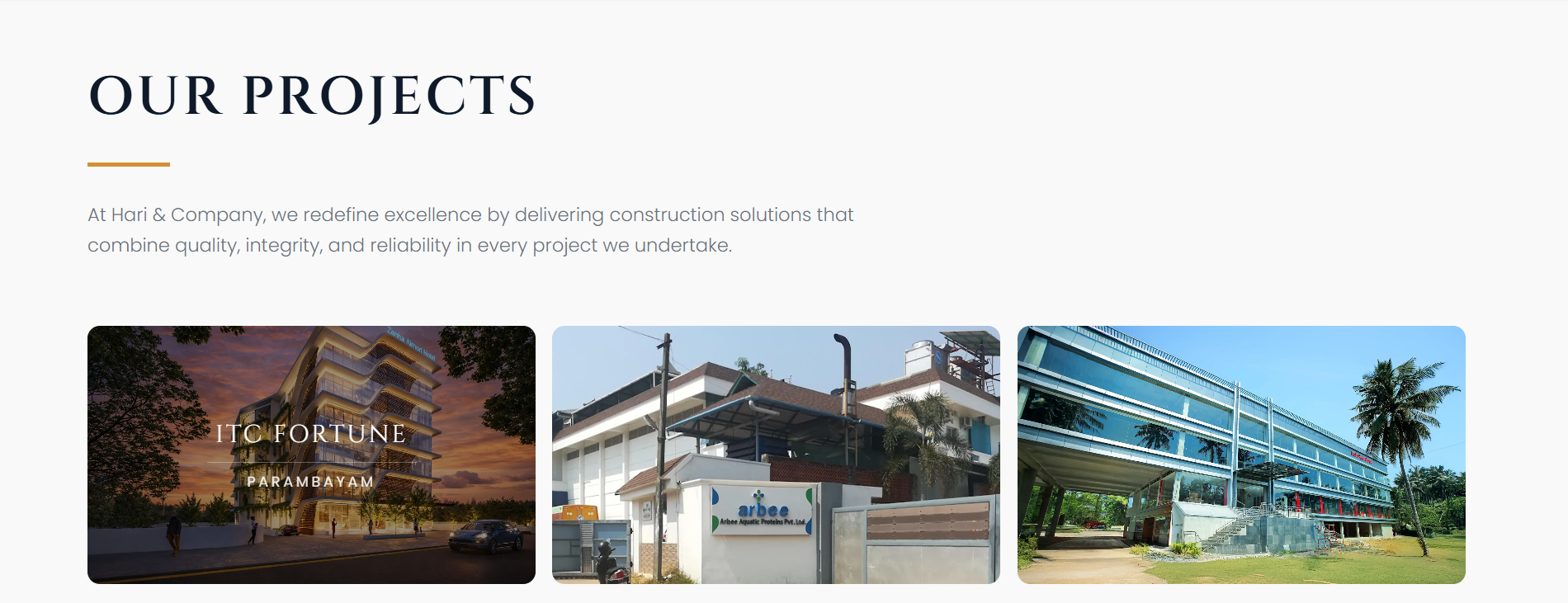 Developed a high-performance, animation-driven corporate website for Hari & Company, a leading construction firm in Kerala with over 30+ years of industry legacy. The goal of the project was to deliver a premium digital experience that reflects the company’s scale, credibility, and diverse portfolio across industrial, commercial, and residential sectors.