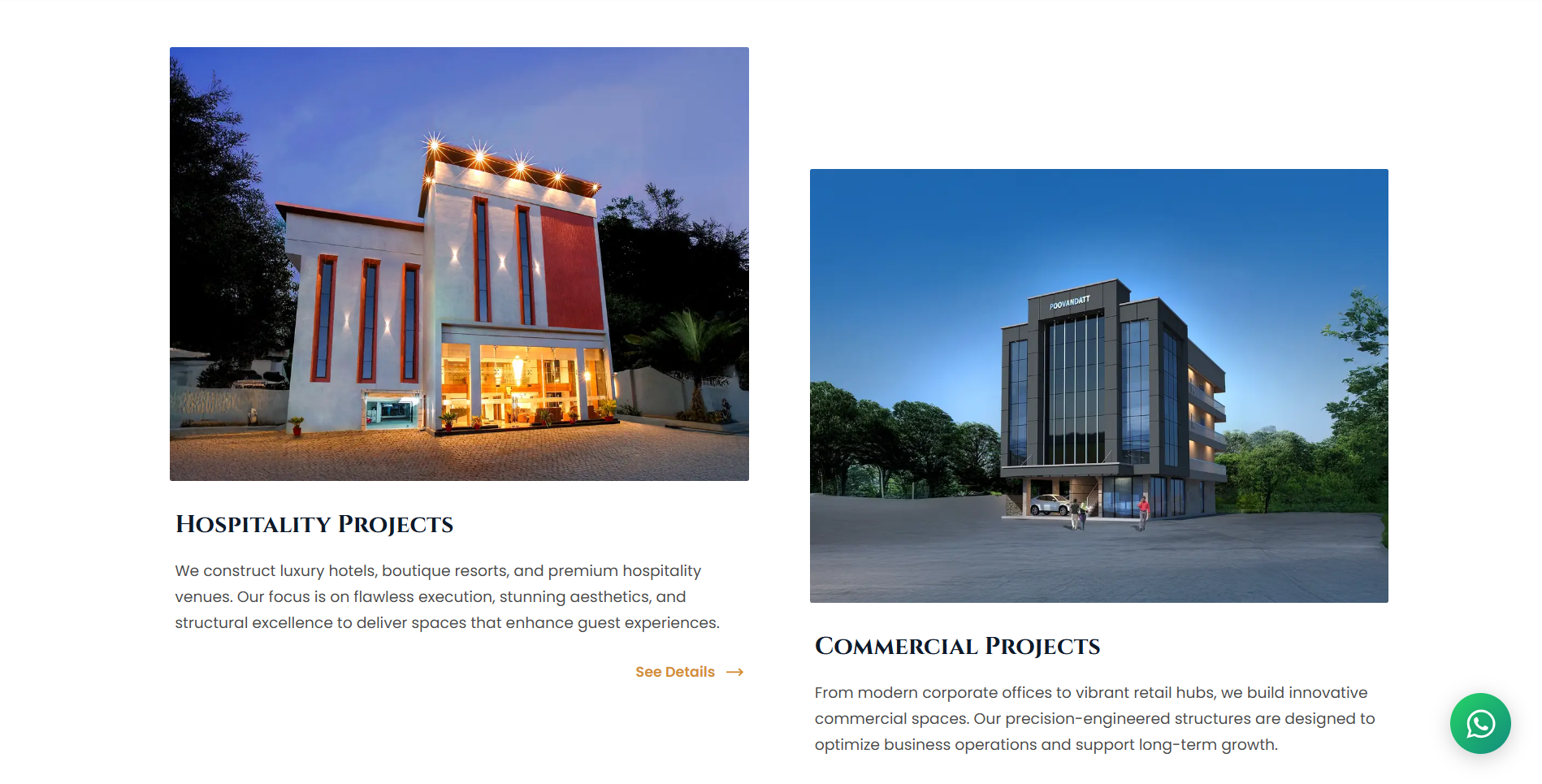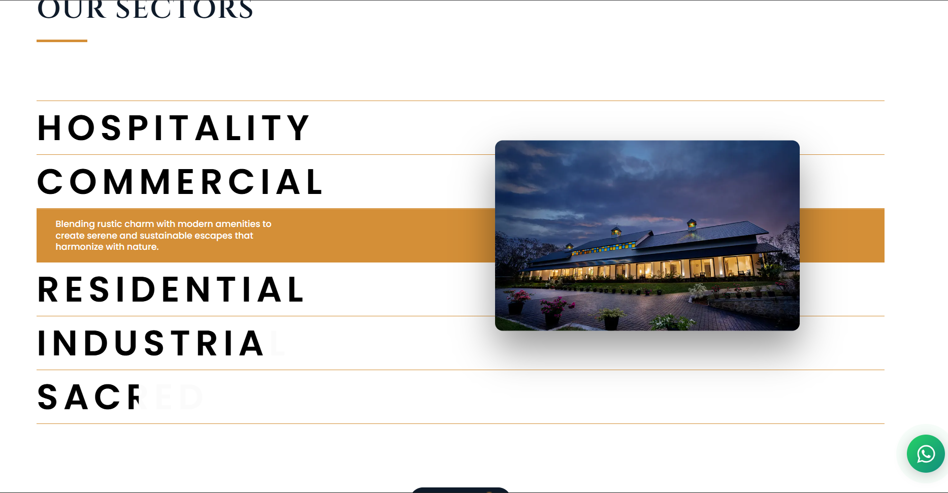 Hospitality, Commercial, Sacred Architecture, Industrial, Infrastructure, and Premium Residential.